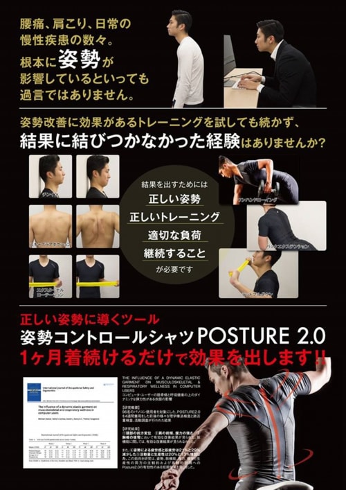 姿勢を変えてくれる優れもので、スポーツをやられる方はこれを着ていただくだけで、肩甲骨などの動きが良くなりトレーニングの効率が上がることはもちろんのことパフォーマンスも上げていくことが期待されます。