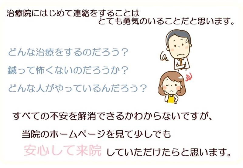 自分も初めはそうでした。ですから、そうしたイメージを払拭するべく、きちんとした説明をする鍼灸治療を提供します。